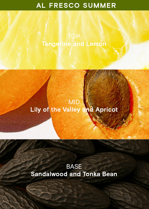 Fresh, quiet, and softly radiant. It opens with a burst of tangerine and lemon — bright and sunlit. Lily of the valley and apricot bloom gently at the center, airy and tender. As it settles, sandalwood and tonka bean bring a warm, creamy softness. It feels like a slow afternoon: a half-open window, fresh fruit, and the scent of flowers just beginning to breathe. Uplifting, calm, and intimately feminine.