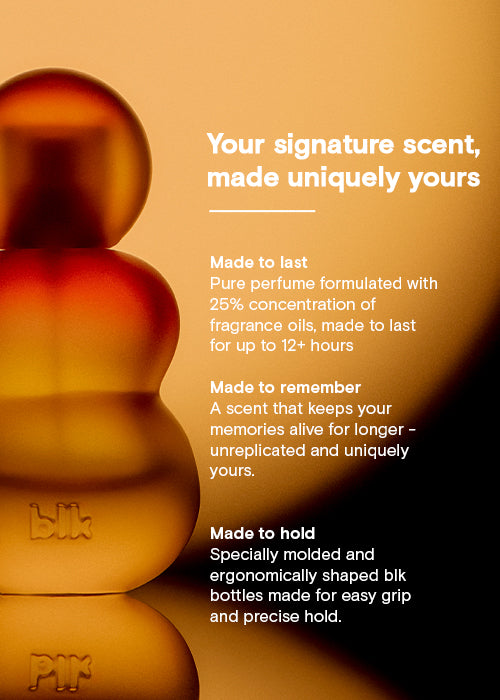 Pure perfume formulated with 25% concentration of fragrance oils, made to last for up to 12 hours