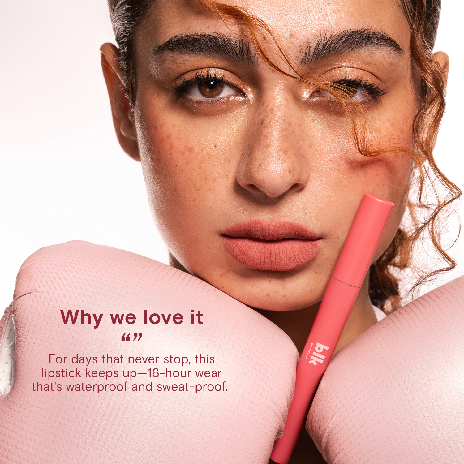 For days that never stop, this lipstick keeps up—16-hour wear that’s waterproof and sweat-proof.