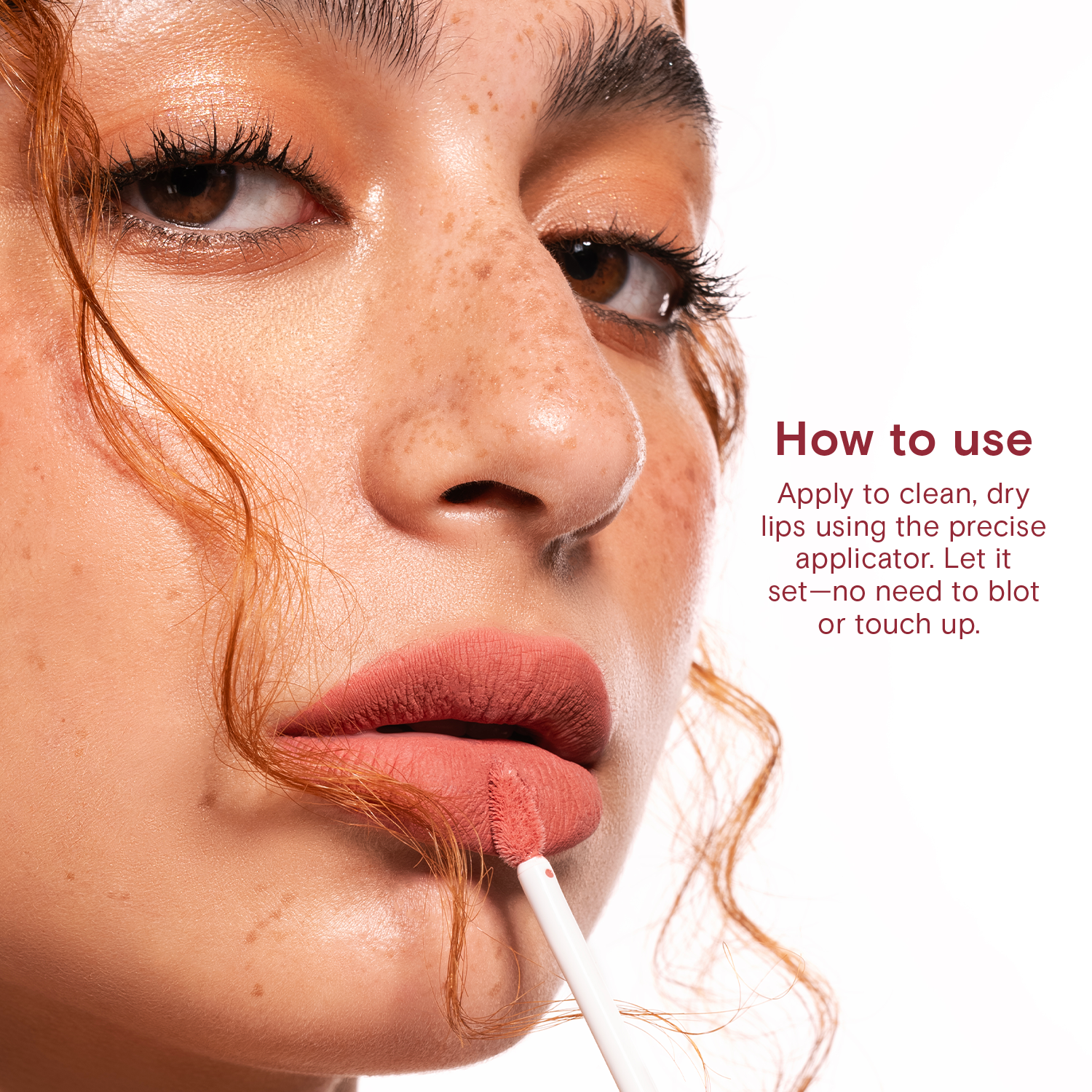Apply to clean, dry lips using the precision applicator. Let it set—no need to blot or touch up.